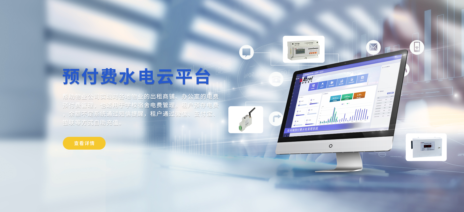 安科瑞提供的解決方案包括Acrel-EIoT能源物聯網云平臺、變電所運維云平臺、安全用電管理云平臺、環保用電監管云平臺智慧消防云平臺能源管理云平臺、工業企業能源管控平臺、遠程預付費云平臺餐飲油煙監管云平臺、電動汽車/電瓶車充電樁收費管理云平臺、電力監控/無線測溫系統、電能質量治理系統、電氣火災監控系統消防設備電源監控系統、防火門監控系統應急照明和疏散指示系統、智能照明控制系統、醫用隔離電源絕緣監測系統等,幫助用戶實現能源智能化、可視化、精細化管理,提高用能效率和用能安全,為企業節能降耗和實現能源數字化建設提供數據服務。